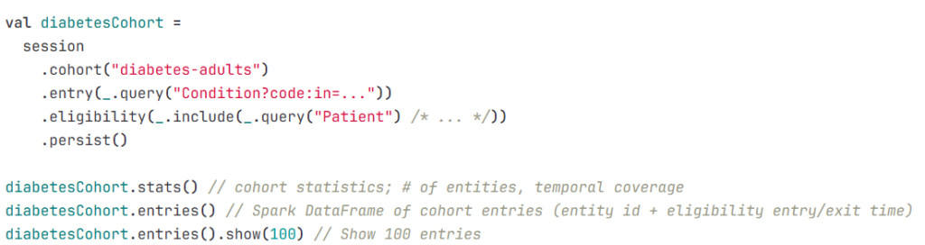 Run consistent logic across millions of patients and large event histories with Spark-native execution.